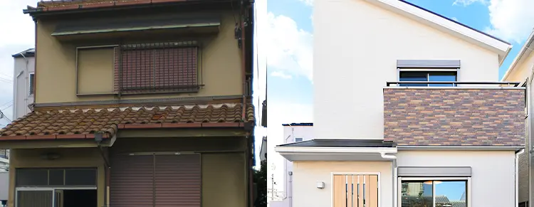 ルーフバルコニーを新たに設け、ツートンカラーでモダンな外観デザインに一新。オール電化の提案で安全性が高まり光熱費も軽減することができました。
